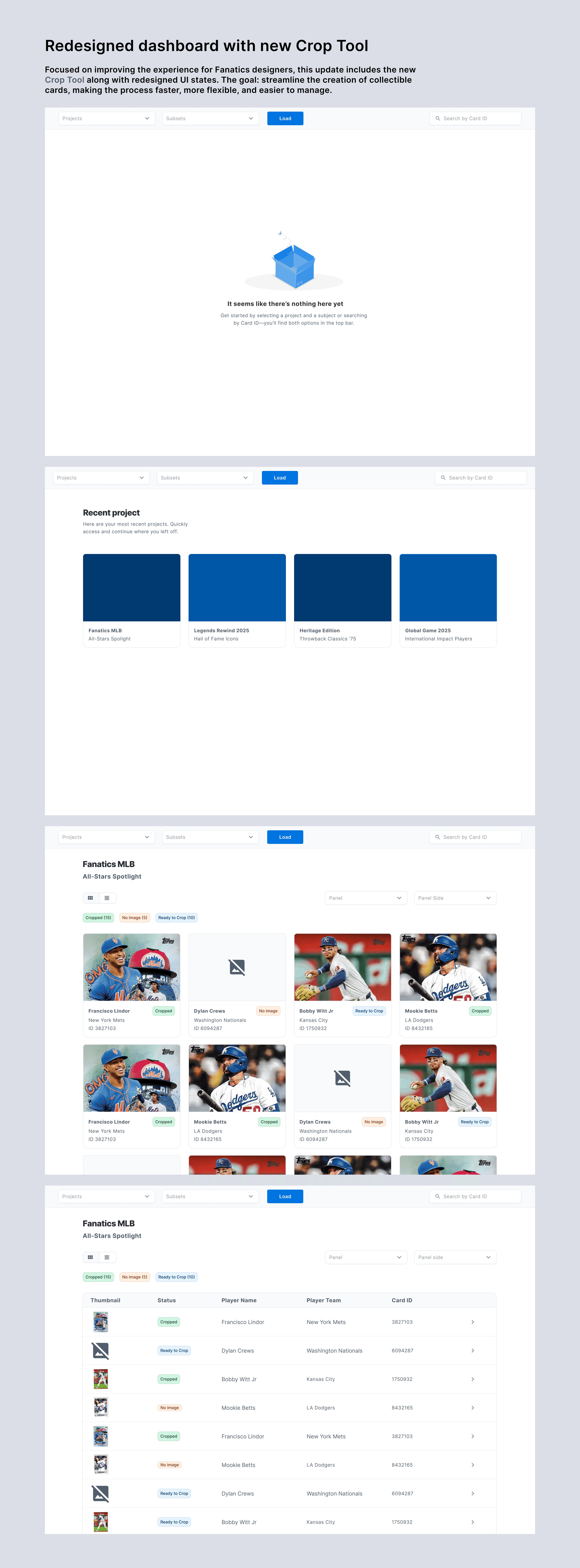 A streamlined update for Fanatics designers—featuring a new Crop Tool and improved UI states to speed up the creation of collectible cards.