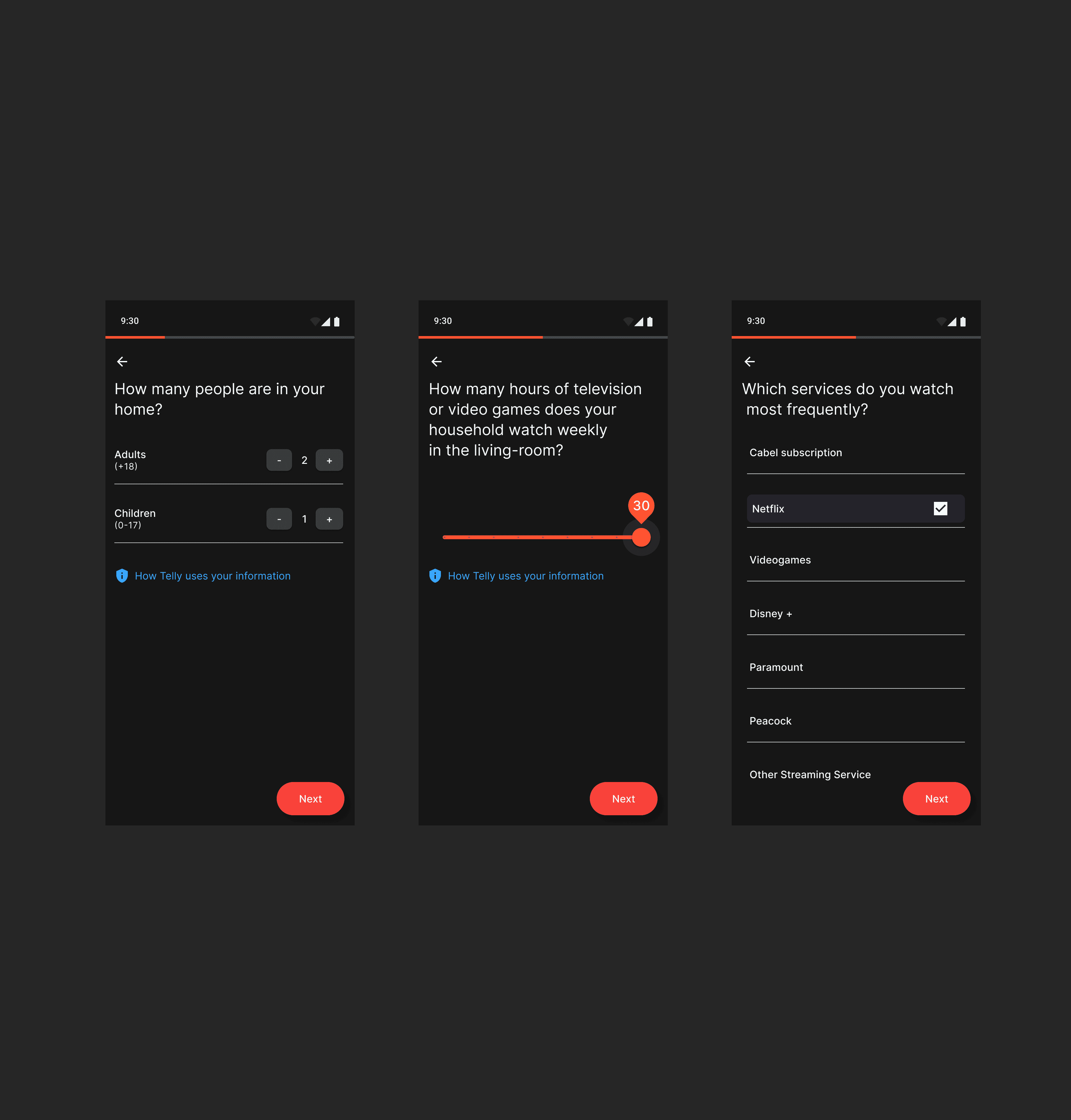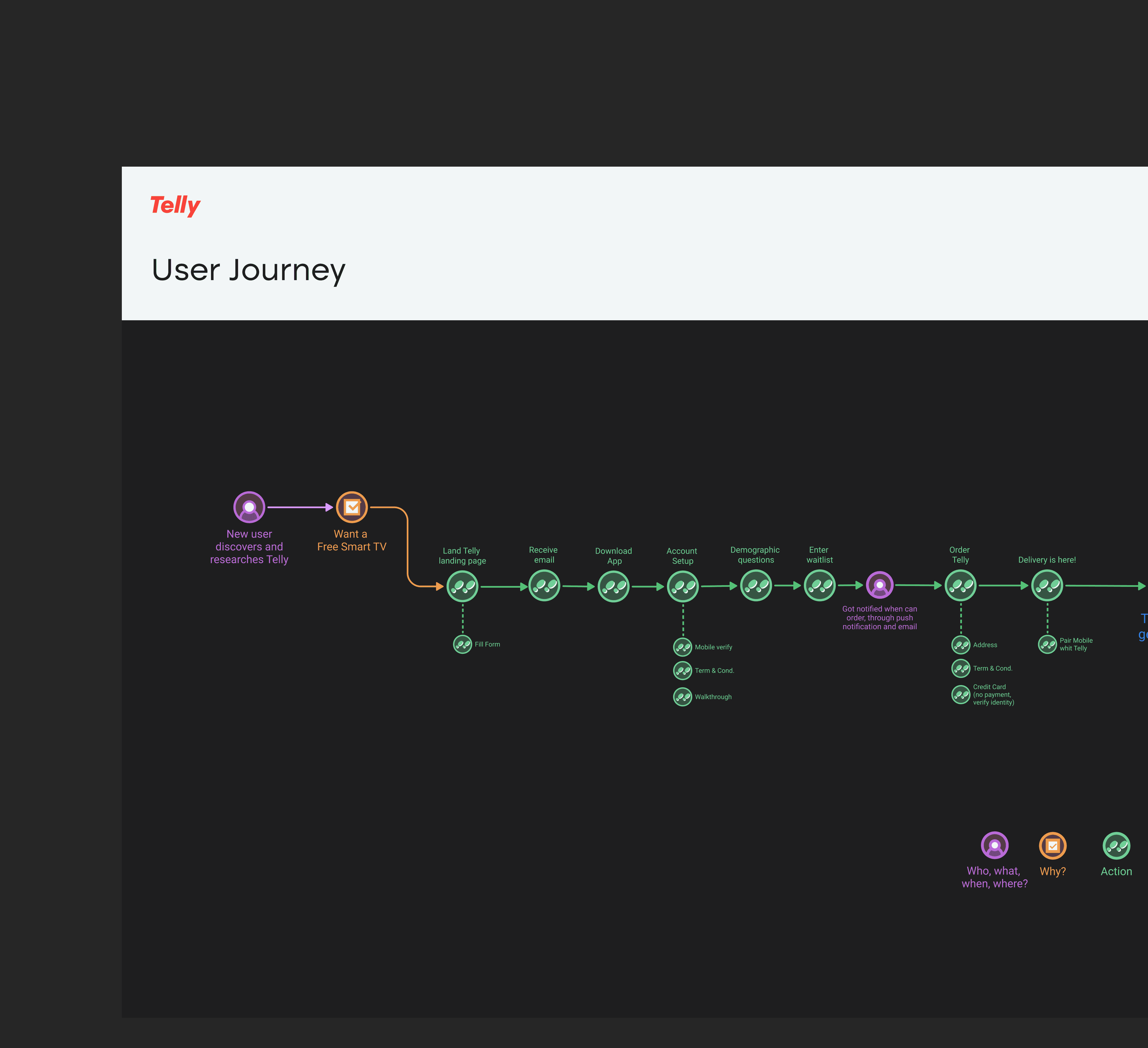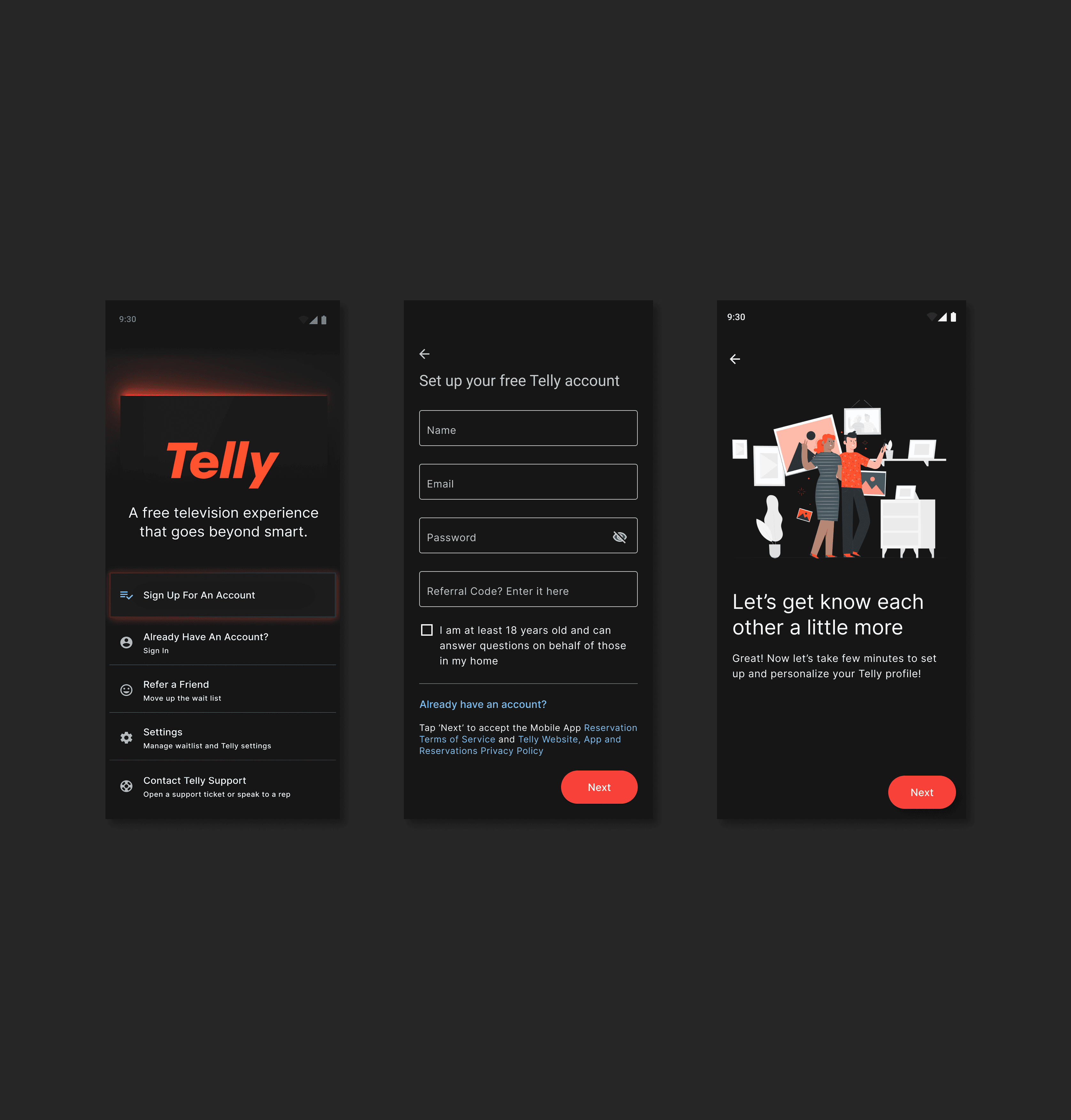 We had to create an intuitive, engaging mobile experience that would guide users through Telly’s unique value proposition: receiving a free 4K smart TV by signing up through the app.